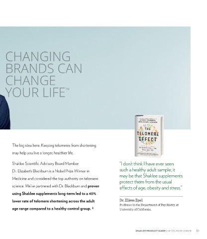 science. We’ve partnered with Dr. Blackburn and proven effects of age, obesity and stress.”